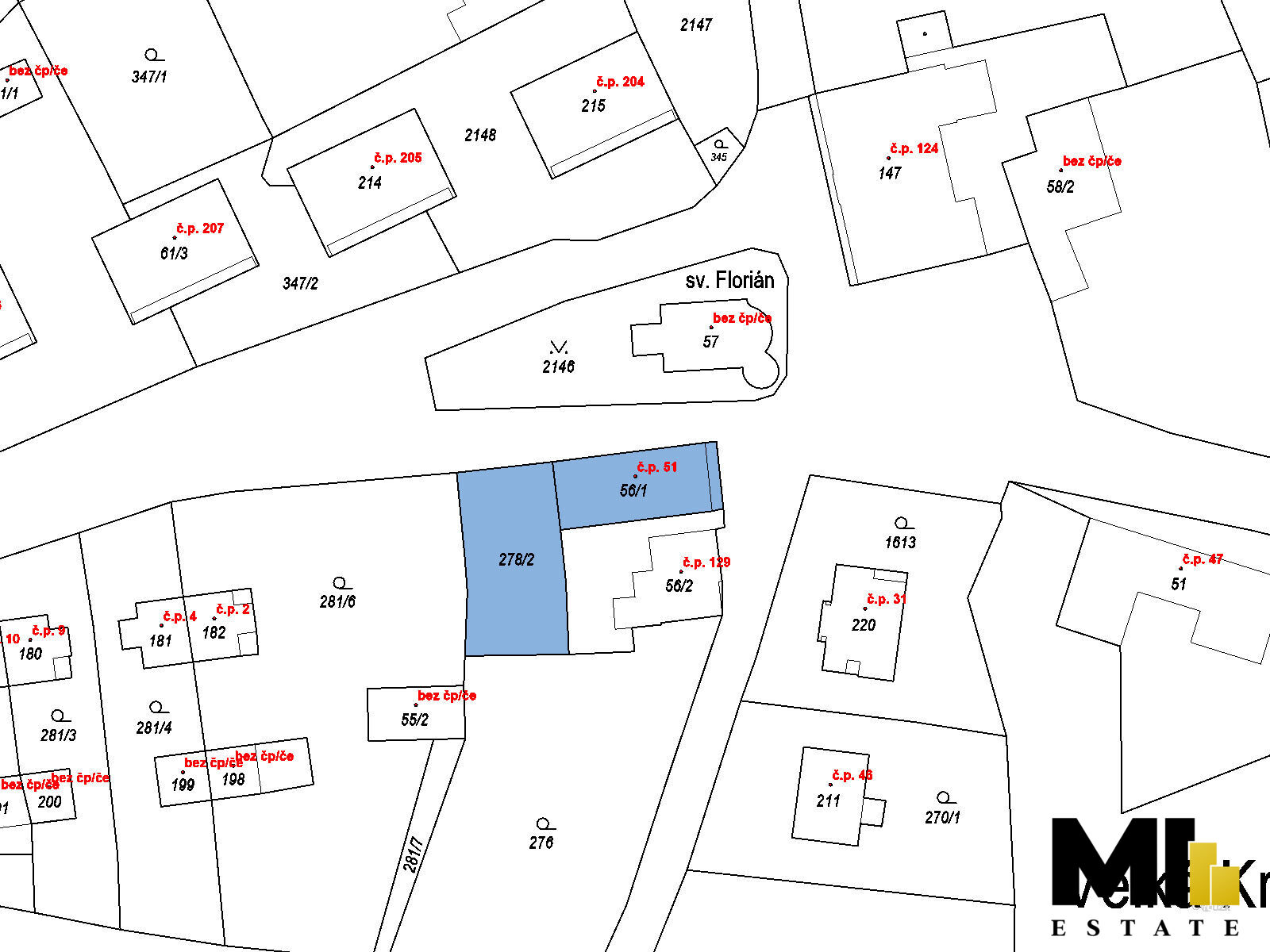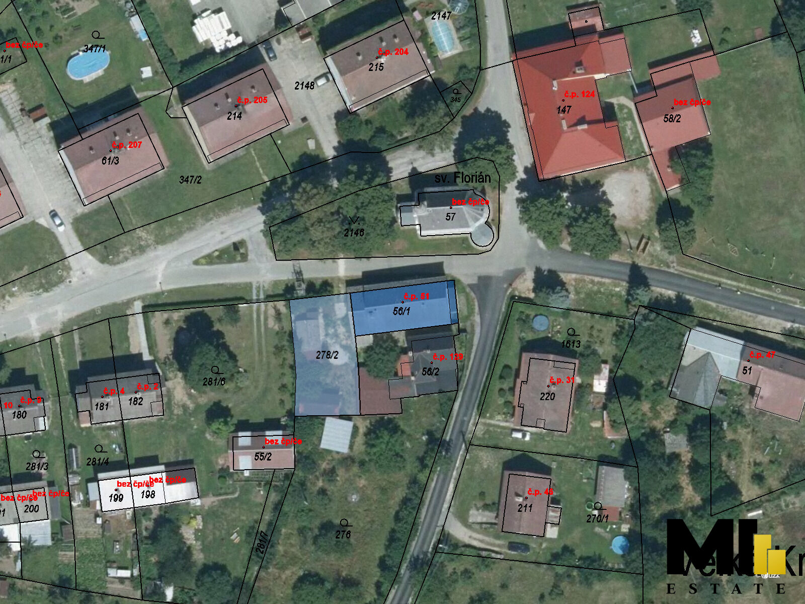 Parkování je možné před budovou nebo na vlastním pozemku o rozloze 335 m2.